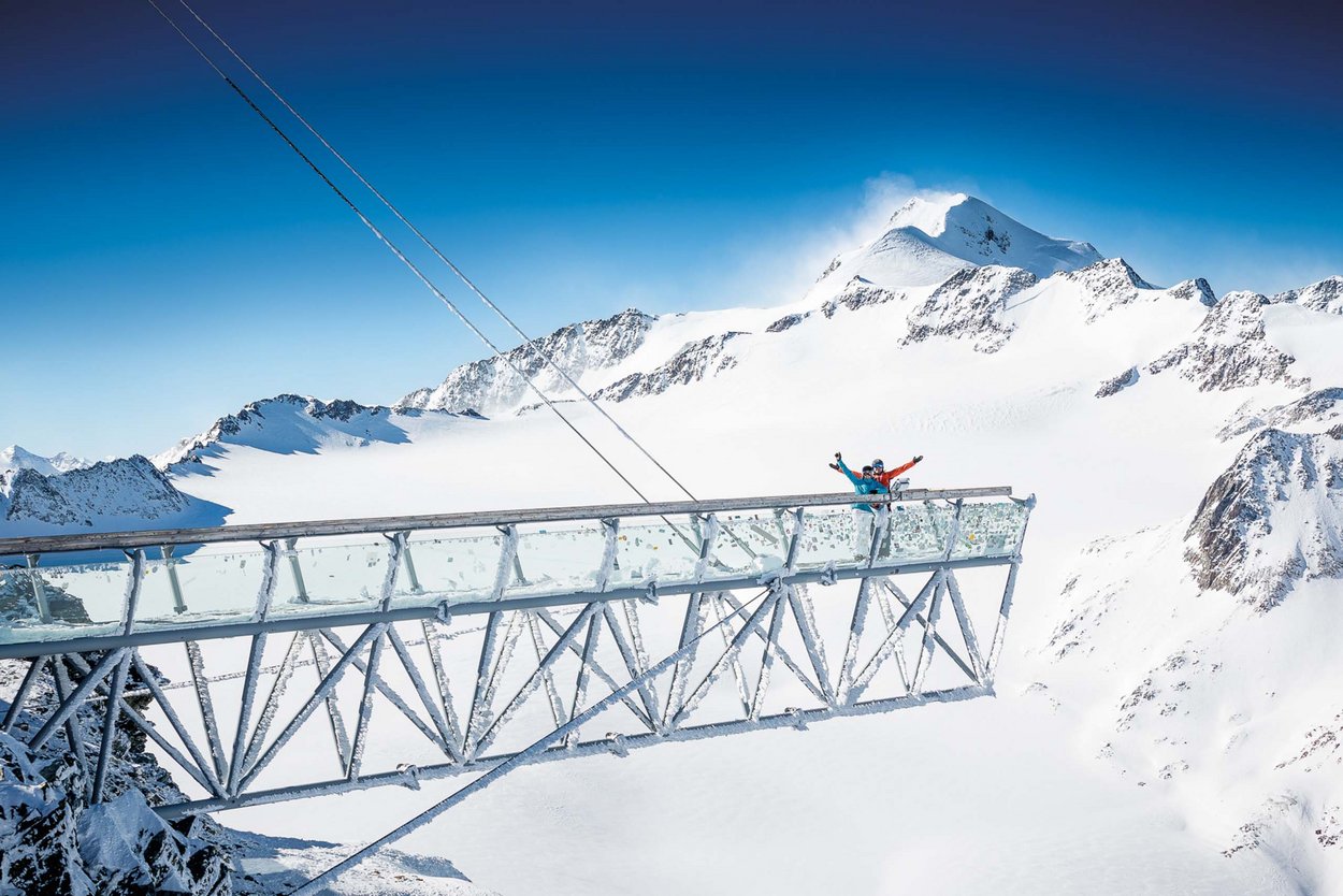 Eingebettet in eine spektakuläre Winterkulisse und bewacht von 250 Dreitausendern liegt Sölden – und mittendrin unser herzliches Vier-Sterne-Hotel Sunny Sölden.